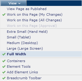 Site administrators and site designers can set up and configure CommonSpot’s responsive design features from the Responsive Design section of the accordion menu in Site Administration.